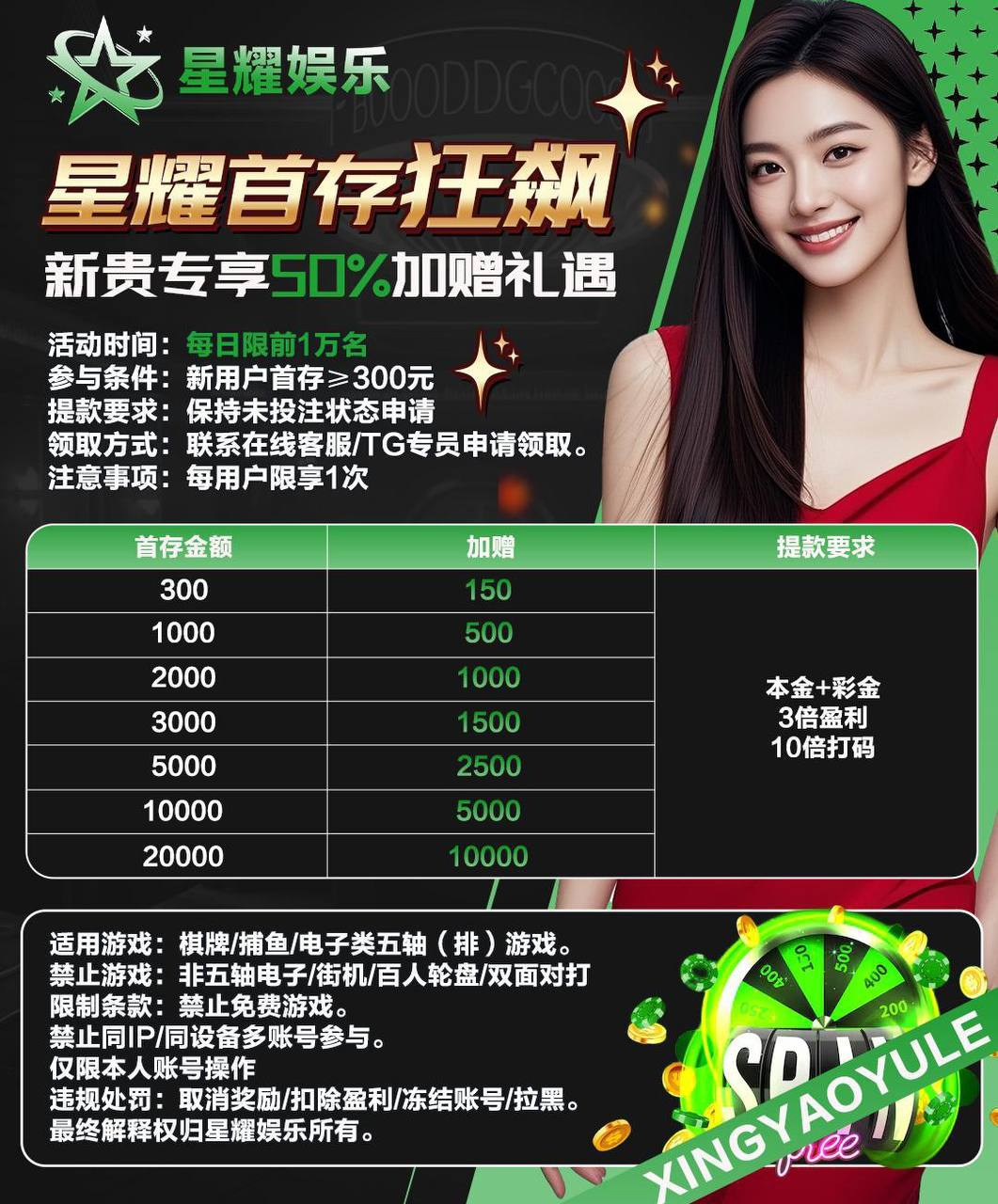 首存加赠50%,300+150,1000+500,2000+1000,3000+1500,5000+2500,10000+5000,20000+10000,要求本彩3倍盈利10倍流水起提,仅限投注五轴电子,禁止购买免费,具体规则看下图